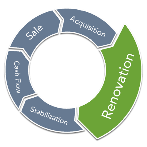 Renovations will begin approximately 3 months after the property is acquired. We expect the property to be fully leased and stabilized 8 months after acquisition. It is anticipated that after the property has been upgraded and stabilized it will either be sold for $10,350,000 ($345,000 per unit) or refinanced after a three-year period.